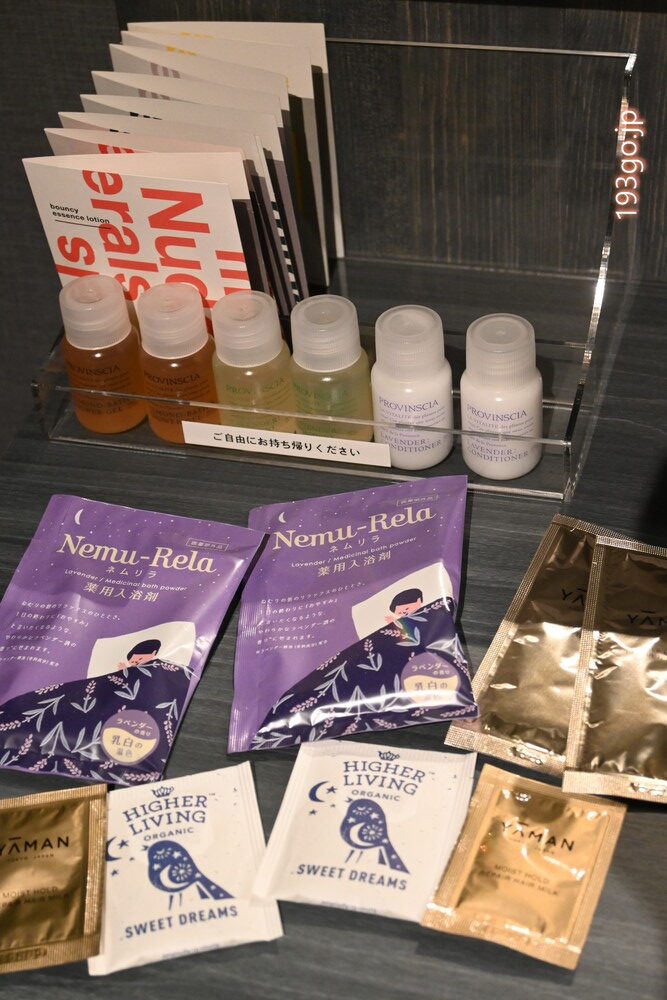 更にトレーには、スキンケア用品やアウトバス用のヘアクリーム、バスパウダー、寝る前におすすめのリラックスティーなどプラン限定の至れり尽くせりのアメニティが詰まってる。