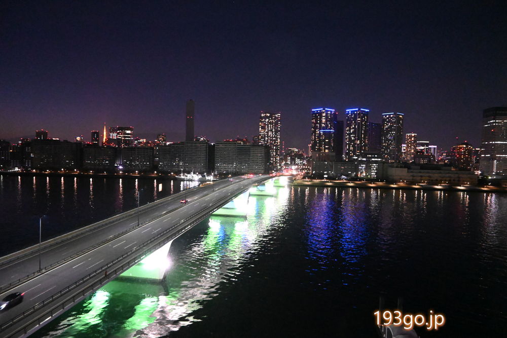 滞在中は、部屋もレストランも、大浴場、各フロアで目の前に運河が流れるパノラマビュー!豊洲大橋に、東京タワー、スカイツリー、レインボーブリッジと、朝昼晩で変わる眺望が楽しめた。