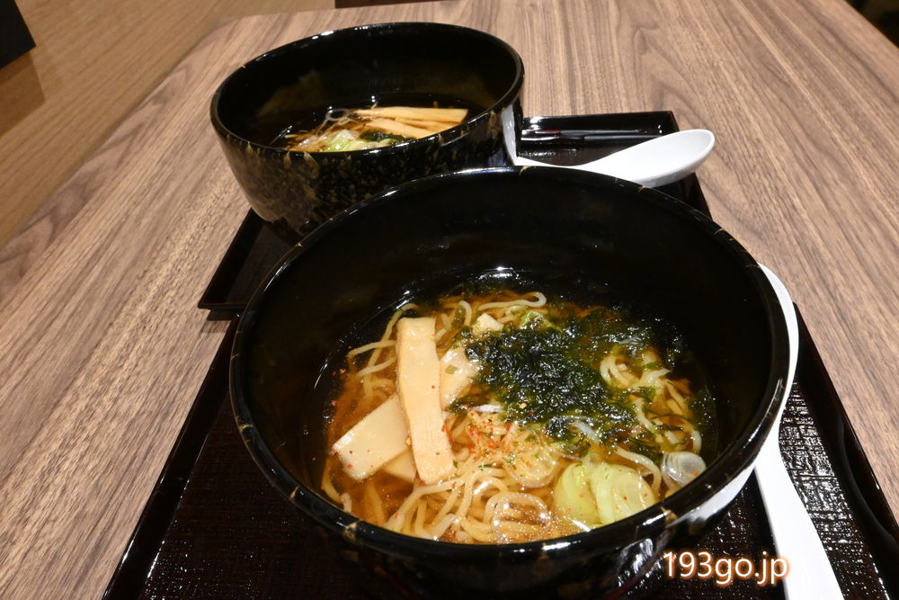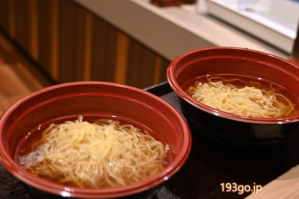 宿泊者に無料でふるまわれる「夜鳴き蕎麦」が食べられる時間は22:30~24:00(最終入店23:45)と、結構遅め。寝る前の蕎麦(ラーメン)だ。これを食べるために夕食も早めに取った。