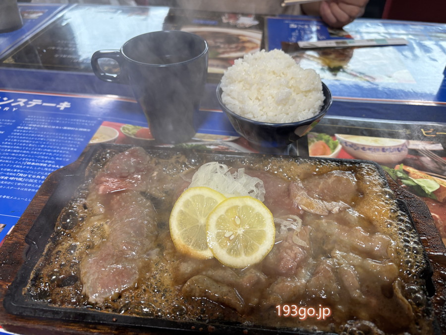 アツアツの鉄板で登場、レモンステーキ