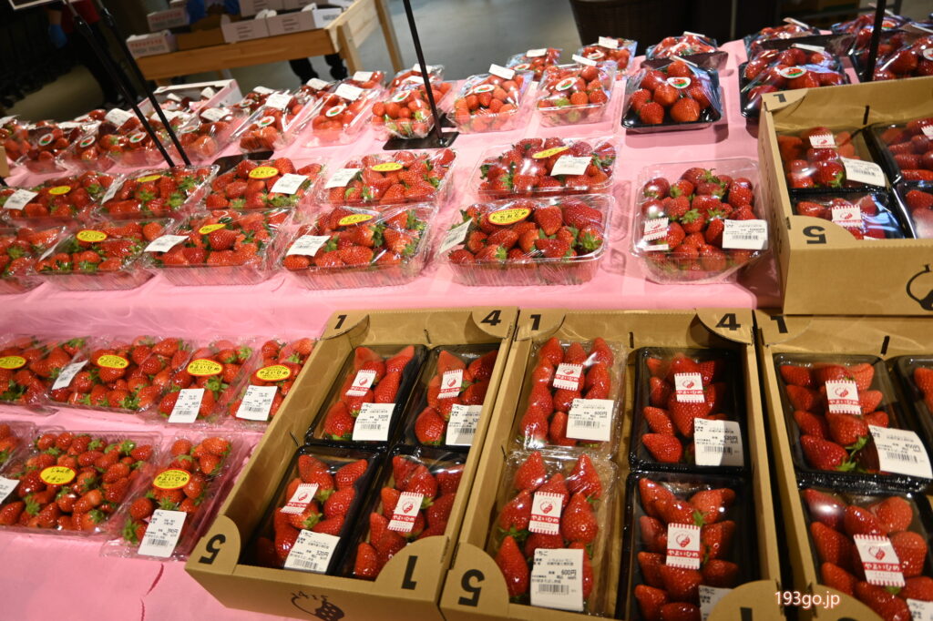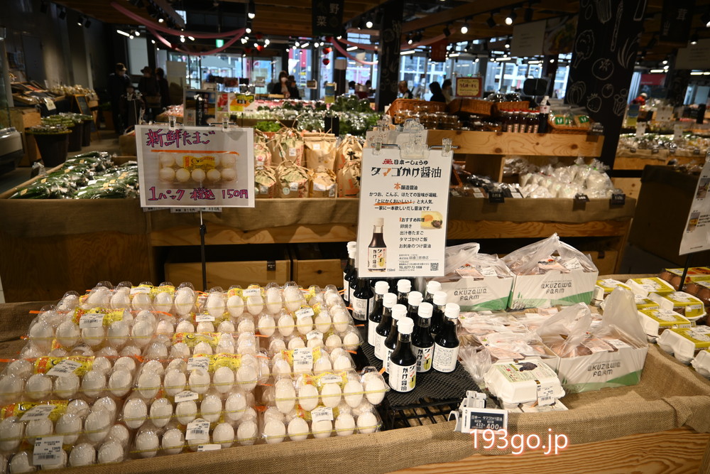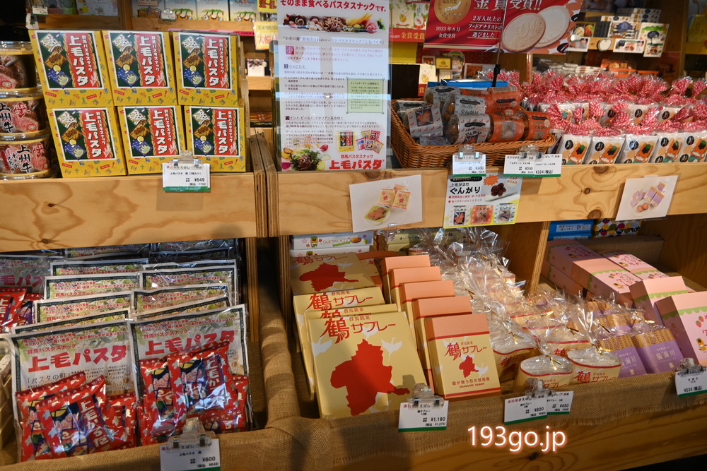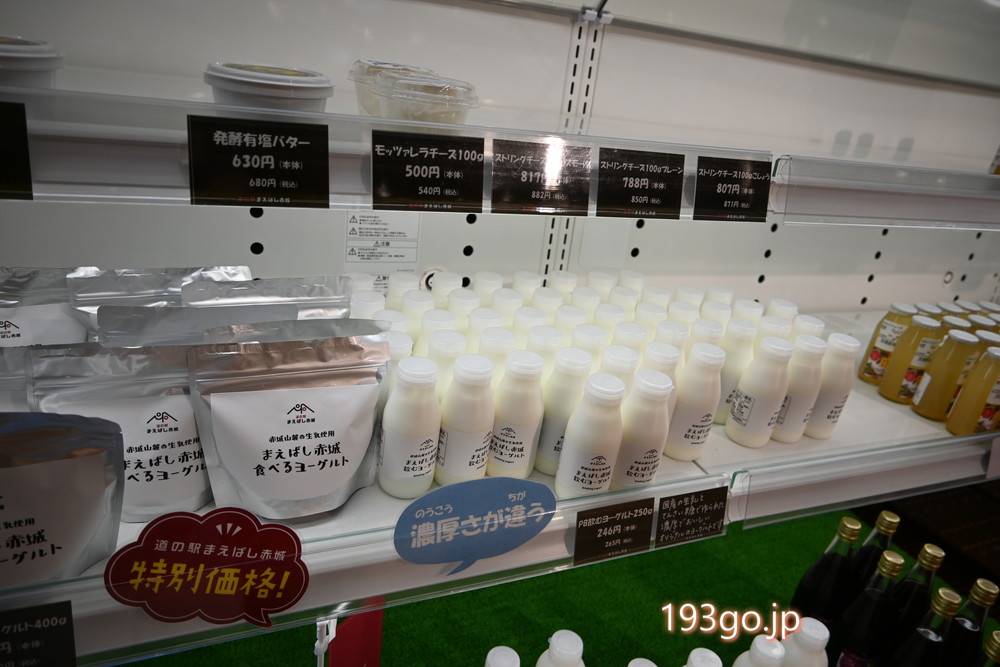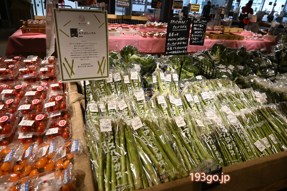 赤城山麓一帯で栽培された新鮮な野菜、前橋の特産品である豚肉などが並ぶ。