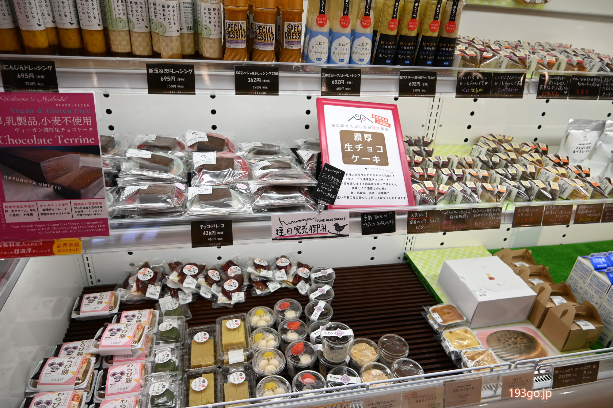 お団子やおはぎ、わらび餅などの和菓子に、冷蔵のスイーツは生チョコケーキやチーズケーキ、オリジナルの飲むヨーグルトも。