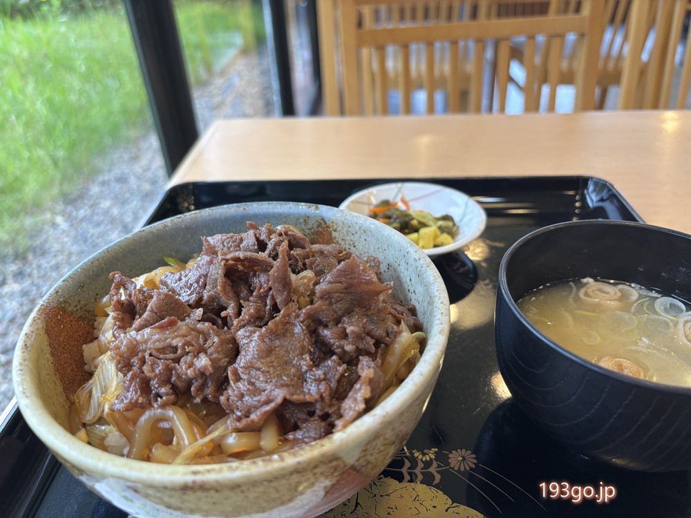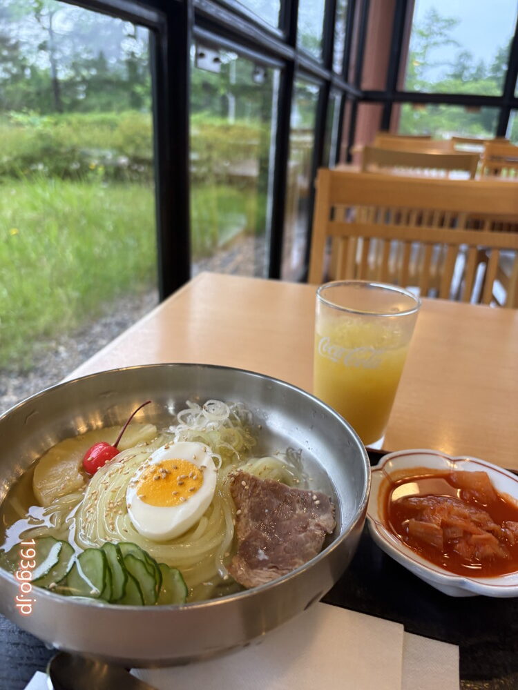 緑が気持ち良いレストラン!前沢牛すき焼き丼と盛岡冷麺