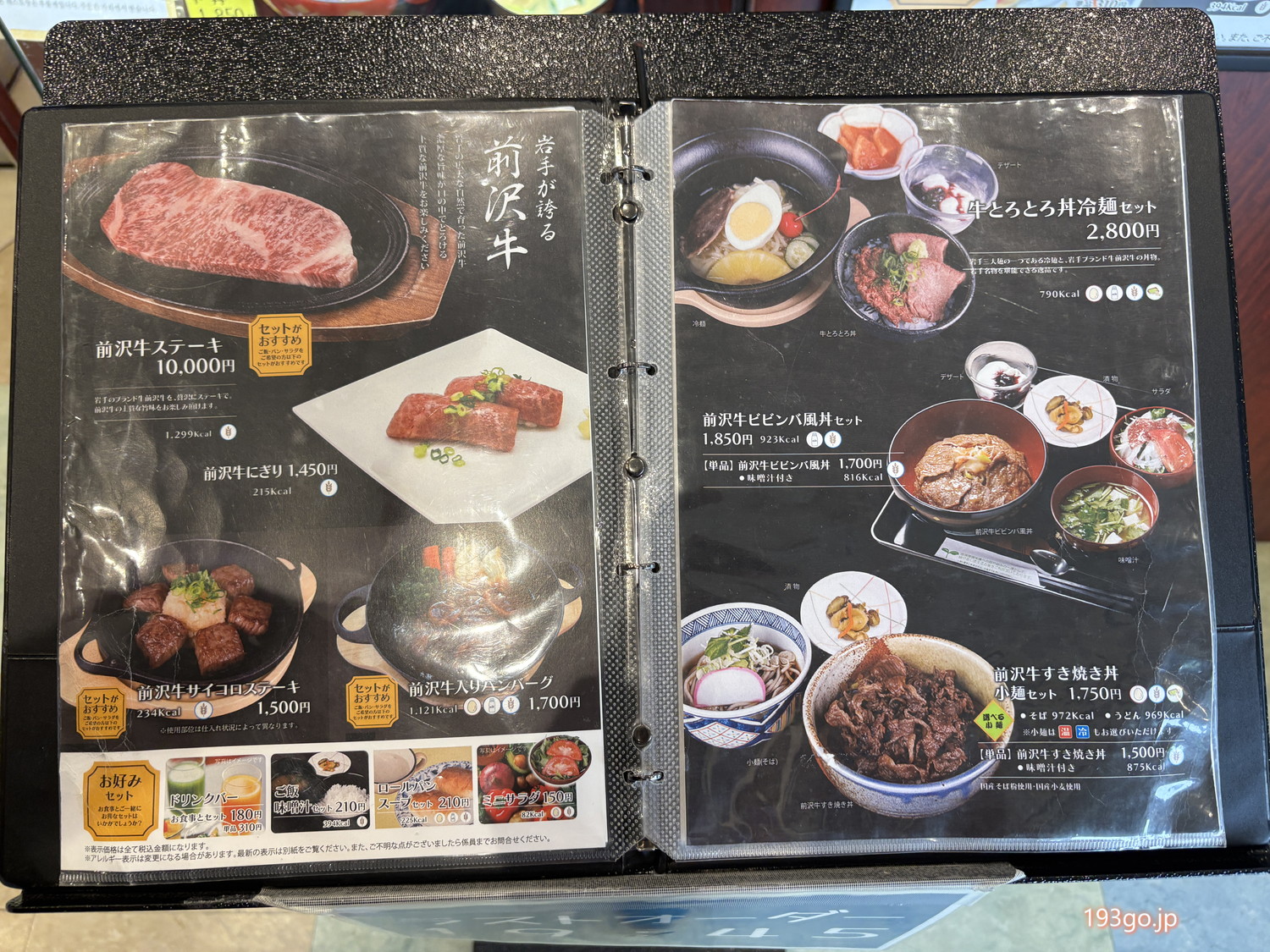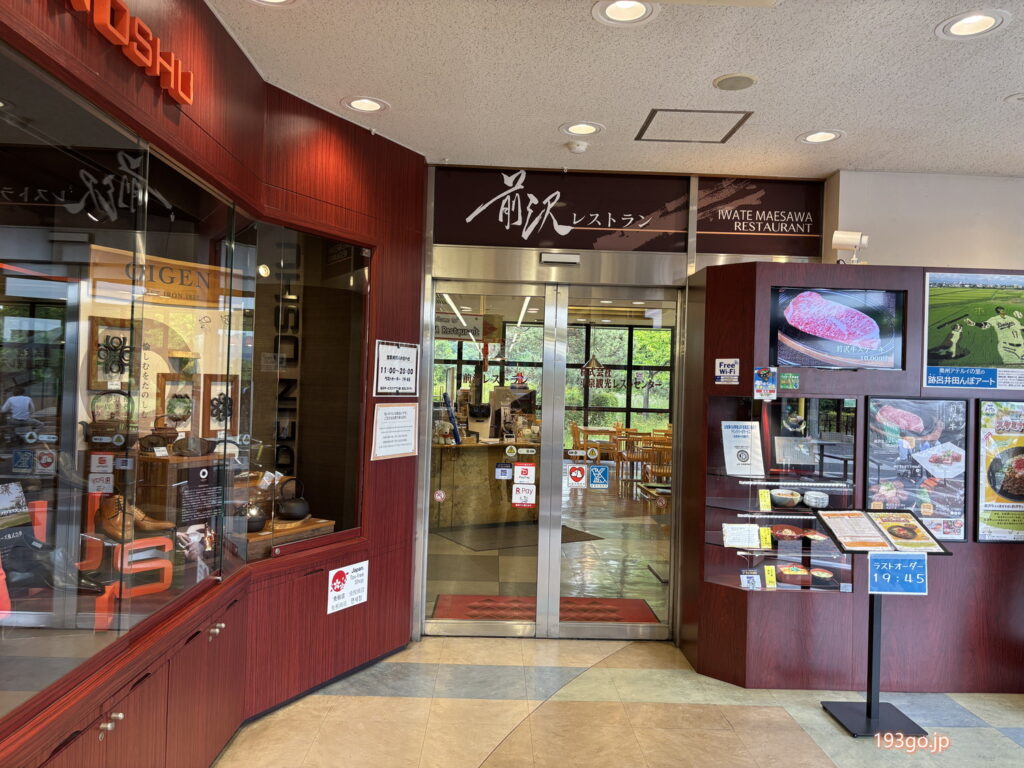 併設のレストラン メニューは前沢牛ステーキ、前沢牛入りハンバーグ、前沢牛ビビンバ…