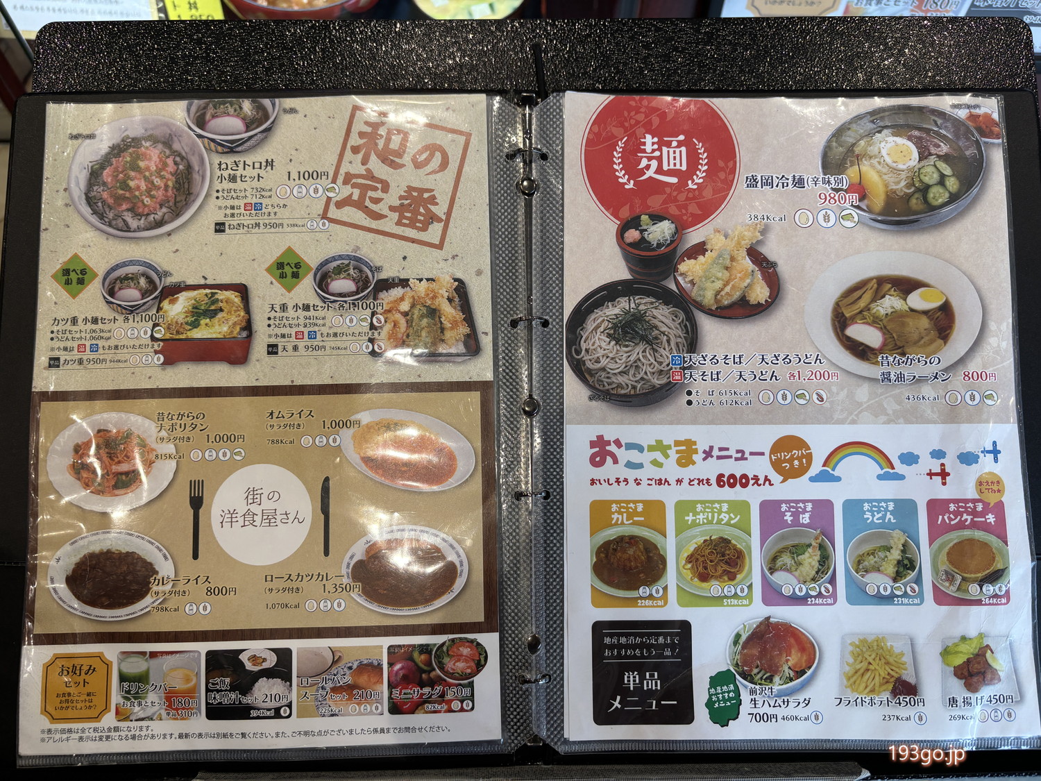軽食・フードコート(24時間) メニュー