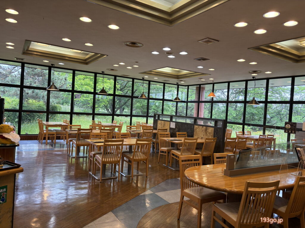 店内は窓が広く緑が気持ち良い。フードコートと値段もそんなに変わらず、広々と楽しめる。
