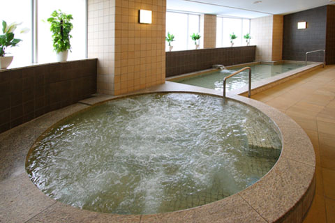 男性用浴室には温浴風呂、ドライサウナや水風呂が完備。