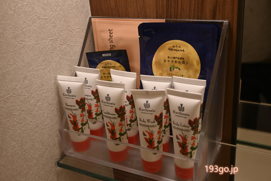 特別アメニティにはスキンケアセットやシートマスク、バスパウダーなどが揃い、女性にはうれしいポイントが満載。