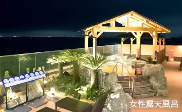展望風呂は、柵を経て海岸に面していて開放感があった。(日中は海が見えるはず)