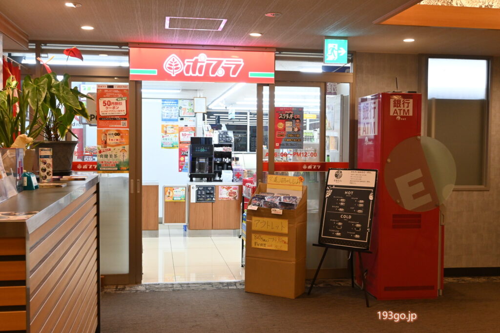 お隣の本館へ。島根土産や日用品も手に入るコンビニ・ポプラとコインランドリーも完備。