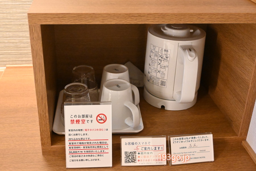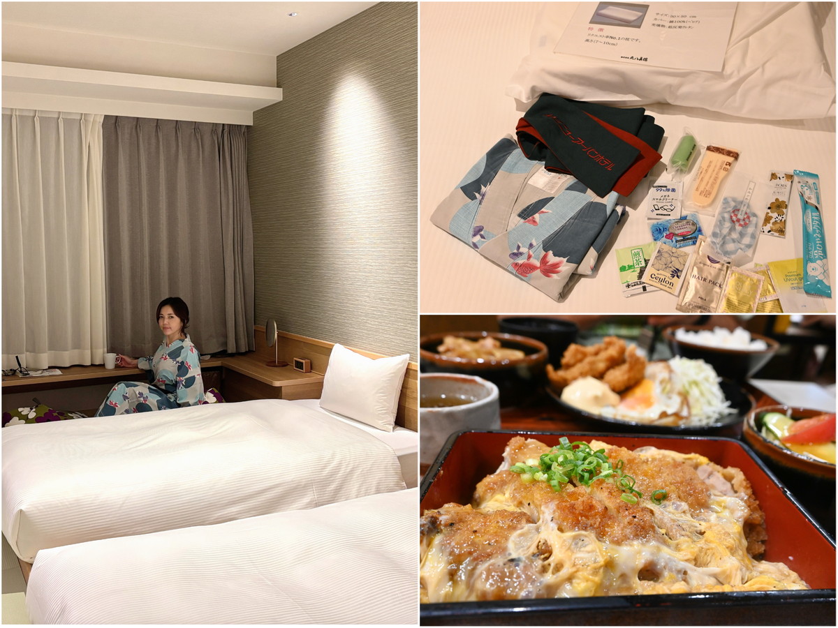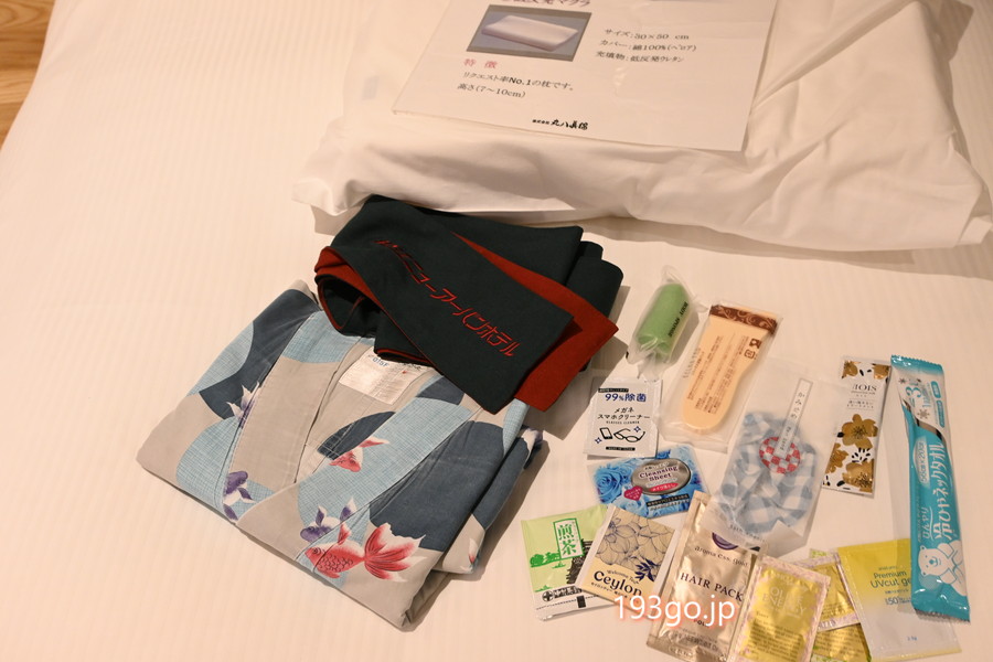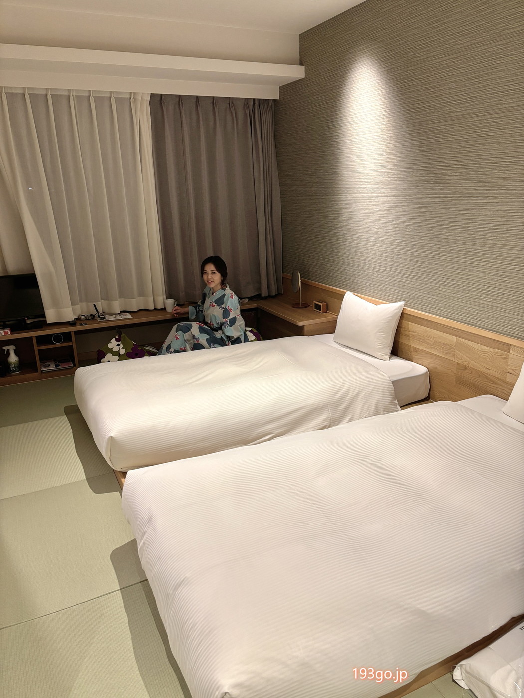 アメニティやレンタル浴衣、選べる枕、ウェルカムドリンクとして好きなドリンクを一本ゲットして、本館の客室へ。設備・サービスが充実していて楽しい滞在に。