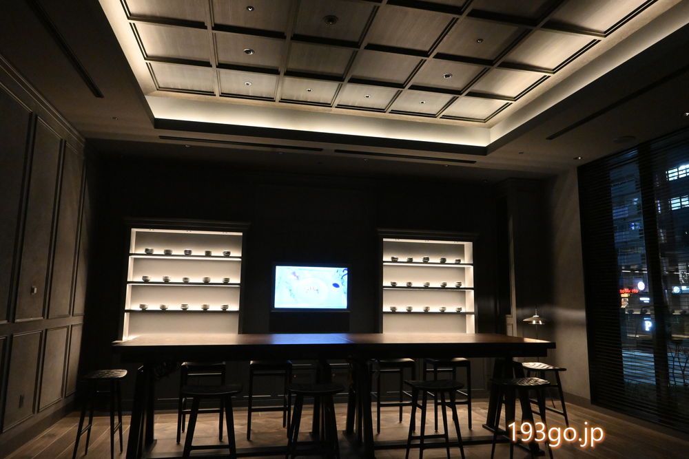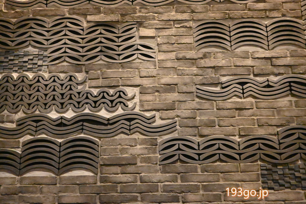 レストランの奥に進むと、壁には瓦がはめ込まれている。さまざまなところで日本のカルチャーを体験できなんともユニーク。