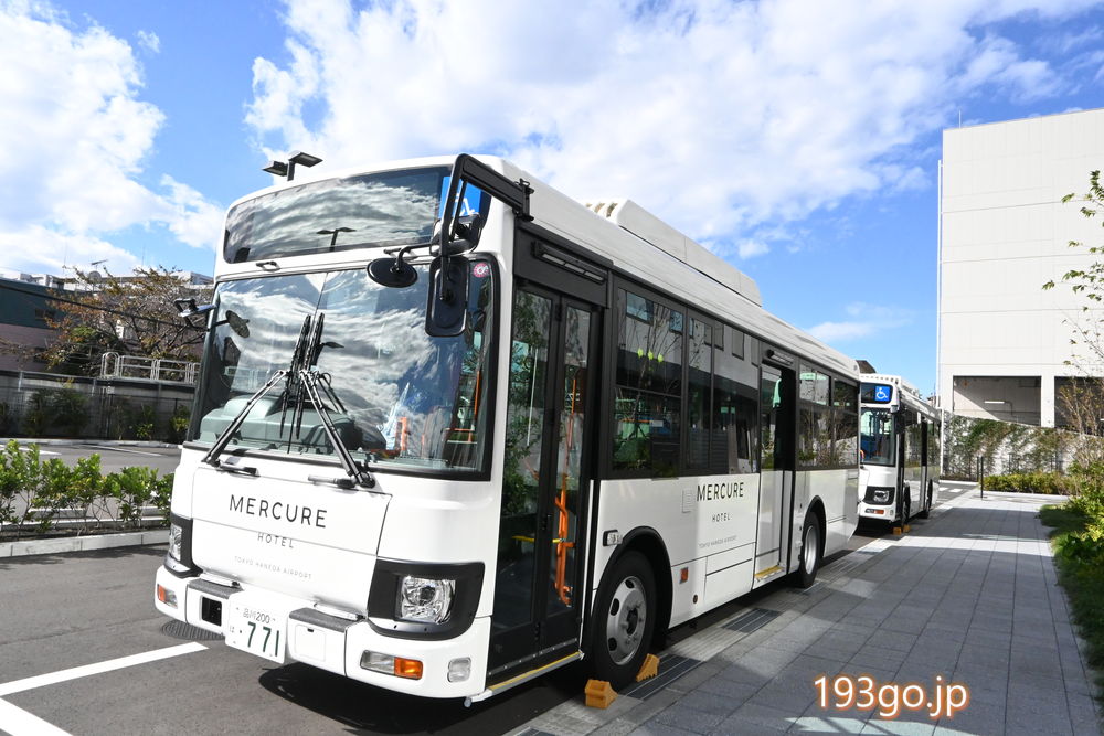 駐車場(47台)には、羽田空港とホテルを行き来する専用のラッピングバスが2台。