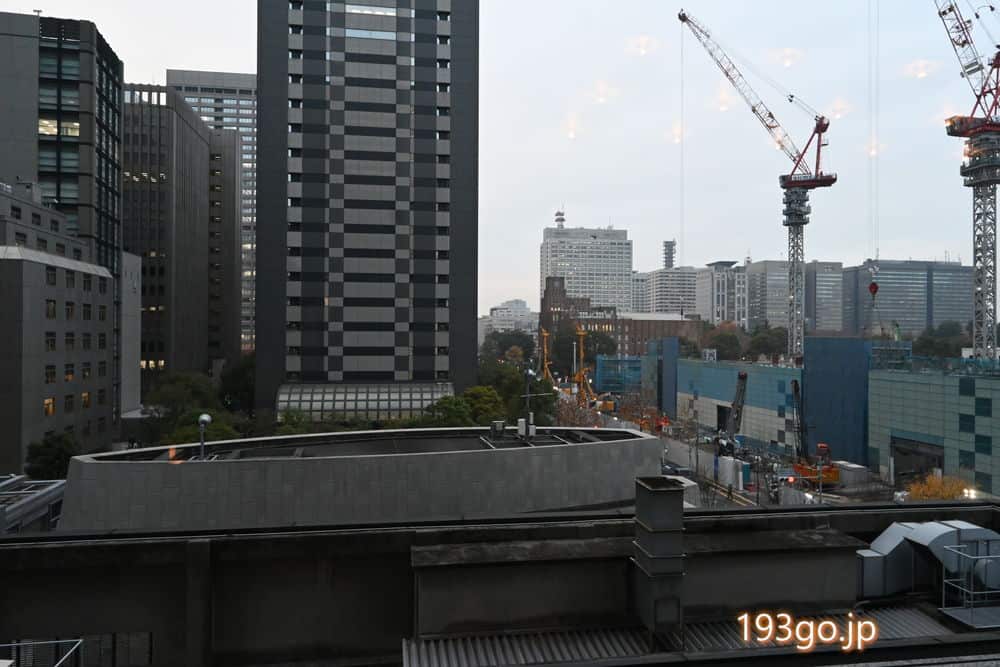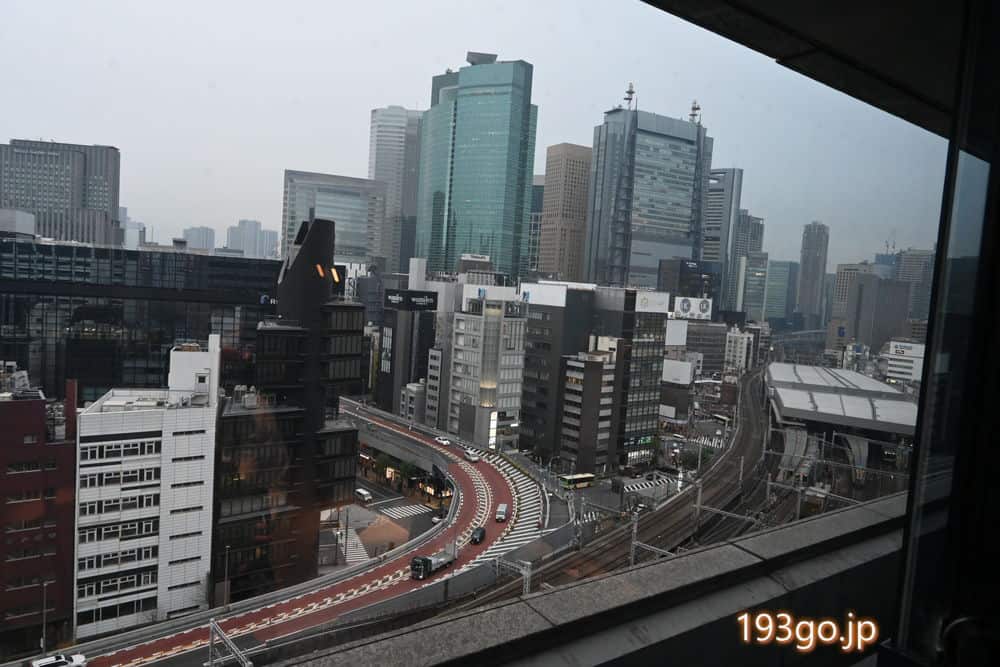 眺望は、西側は日比谷公園、東側は汐留の高層ビルや電車の眺めとなる。