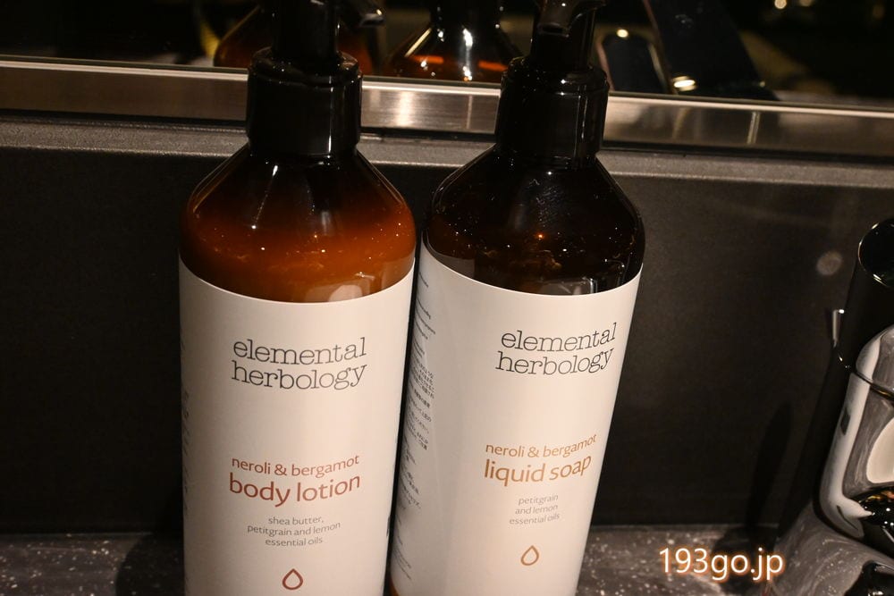 ハンドソープ、ボディローション、バスアイテムが揃う。