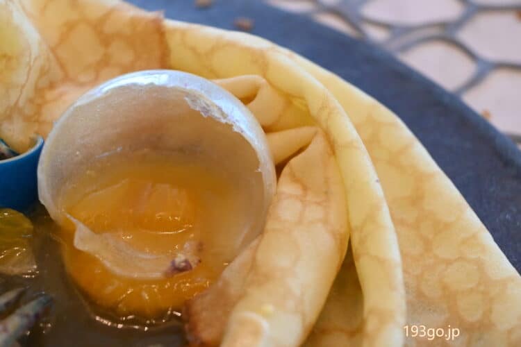 添えられているクレープに濃厚なソースを絡めれば、フランス菓子「クレープシュゼット」として楽しめる。食べ応えのあるサイズも嬉しい!
