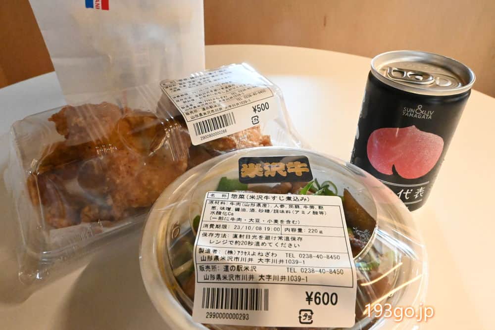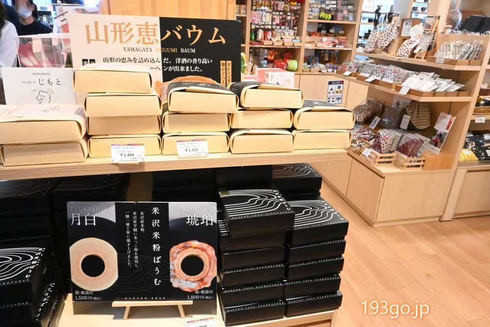 米沢牛パイや米沢牛ビーフカレー、米沢牛の牛丼の具、米沢牛入りサラミ、芋煮、うまいたれ、冷やし肉そば…山形にちなんだ食材・お土産が勢ぞろい。