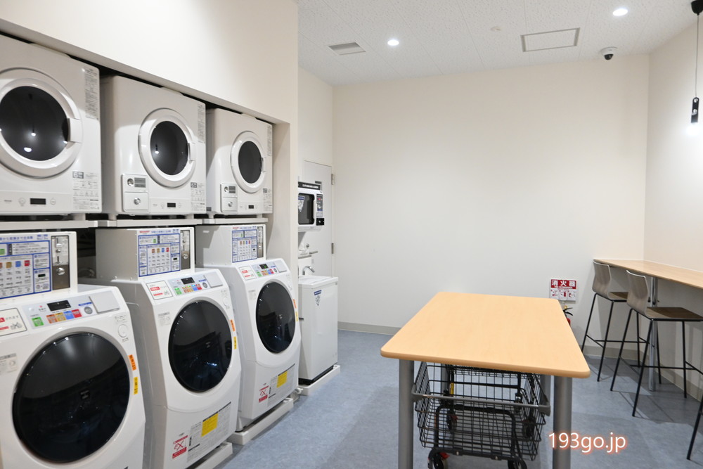 1階のフードコートのオープンを待つ間に、早速コインランドリーで旅中にたまった洗濯を。カウンター席もあり。