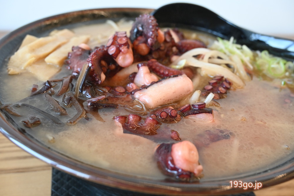 タコのプリプリ食感を存分に味わえるタコ好きにはたまらない、味噌ラーメン。