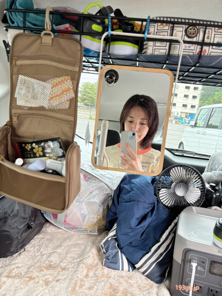 もちろん、車中泊の時はマイタオルやバスアイテムを常備している。