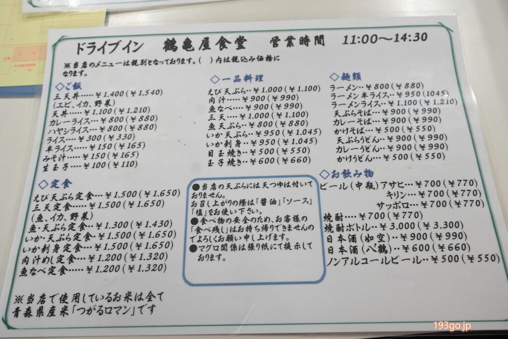 メニューは丼、定食、ラーメンなど。お米は、青森県産つがるロマン。