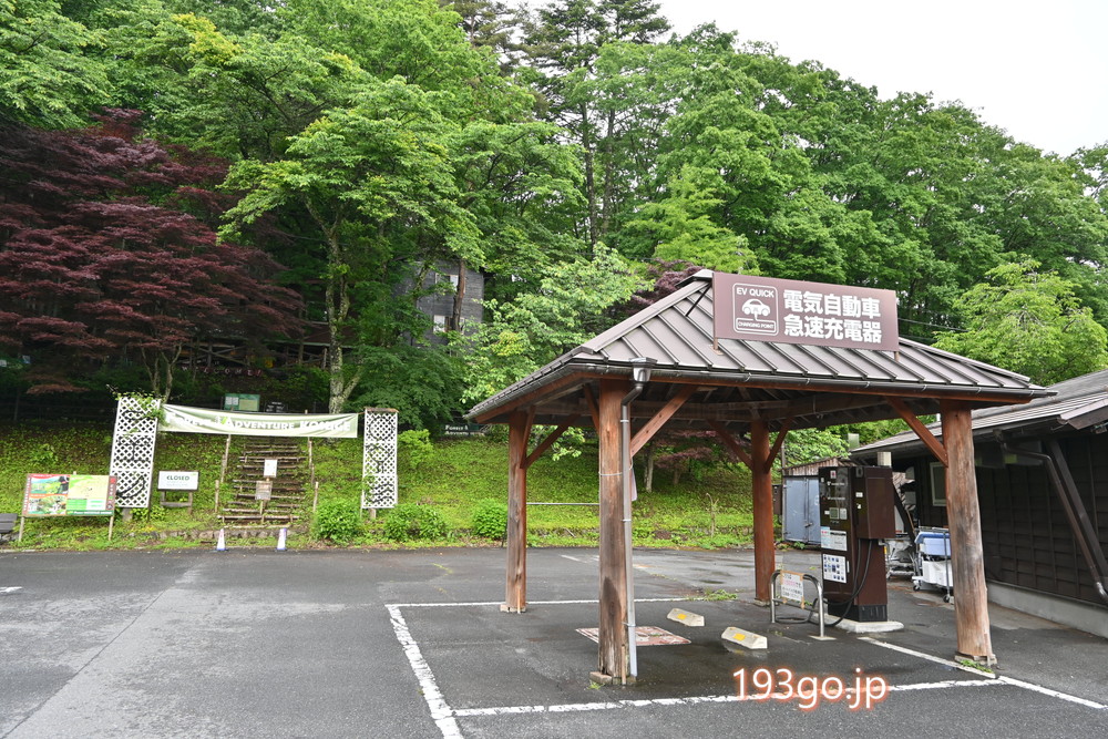敷地内はいくつかの建物に別れ、物産館、レストラン、日帰り温泉にフォレストアドベンチャー、やぎ牧場もある。駐車場の端はRVパーク(5台分)に。