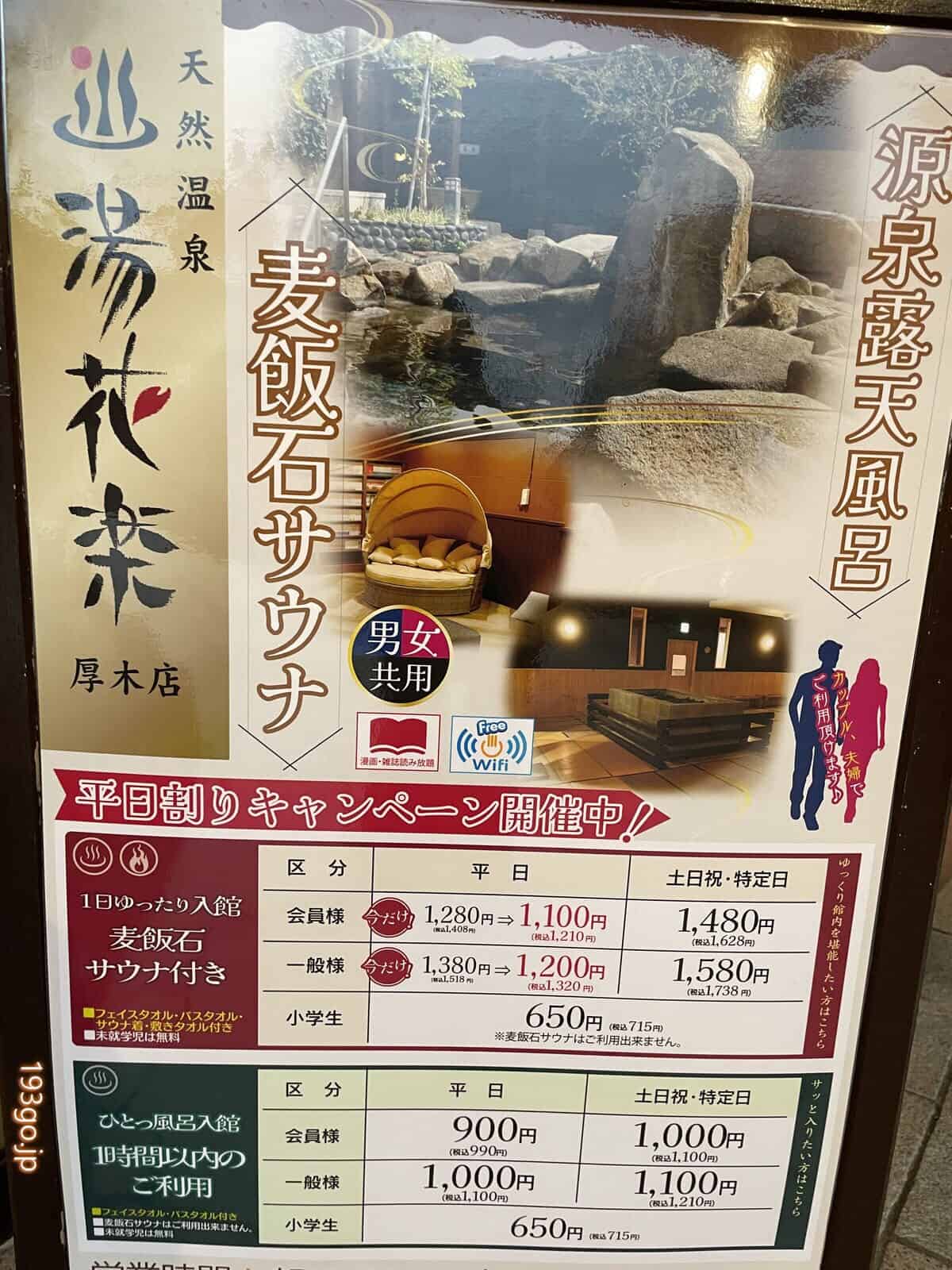 お風呂は「天然温泉 湯花楽 厚木店」で日帰り入浴