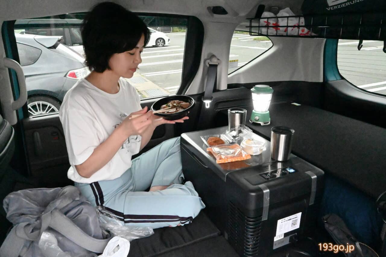 車中泊スポットで寝る準備!冷蔵庫やポータブル電源(車中泊グッズ)が活躍