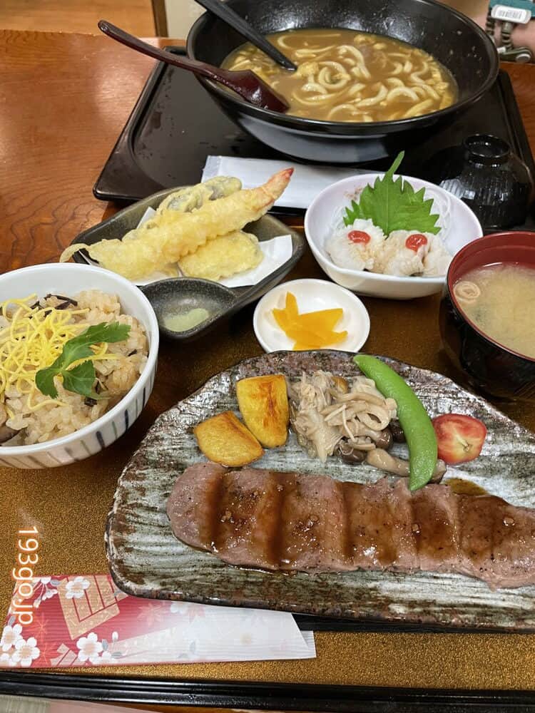 お食事処で、季節限定の御膳:1480円(写真だと豪華そうに見えて、やや少な目)と、