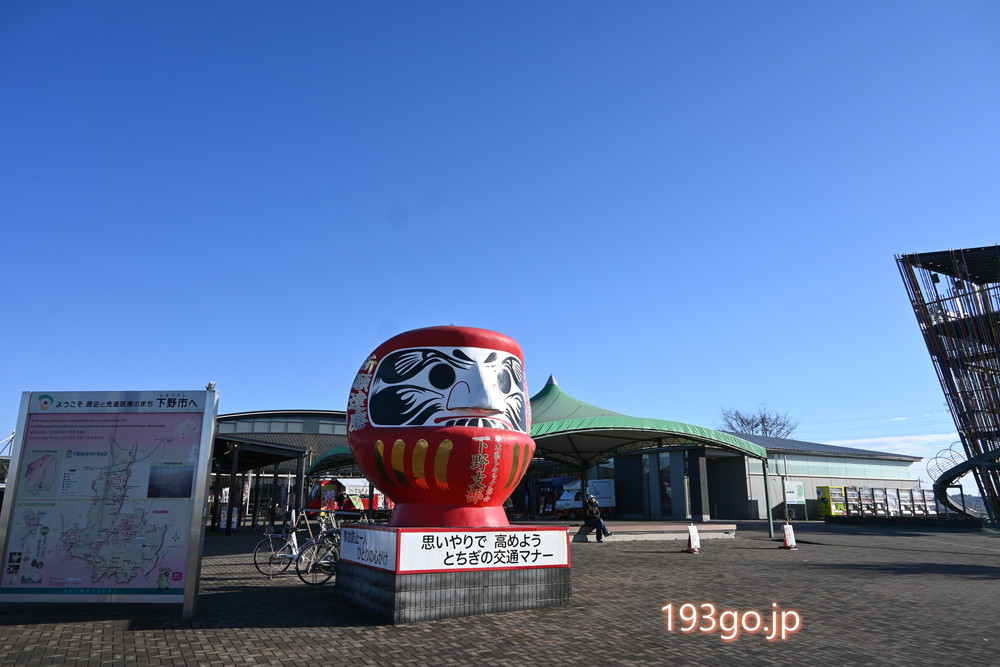 栃木の旅「道の駅しもつけ」に車中泊 広い敷地にスタバや屋台、巨大だるま