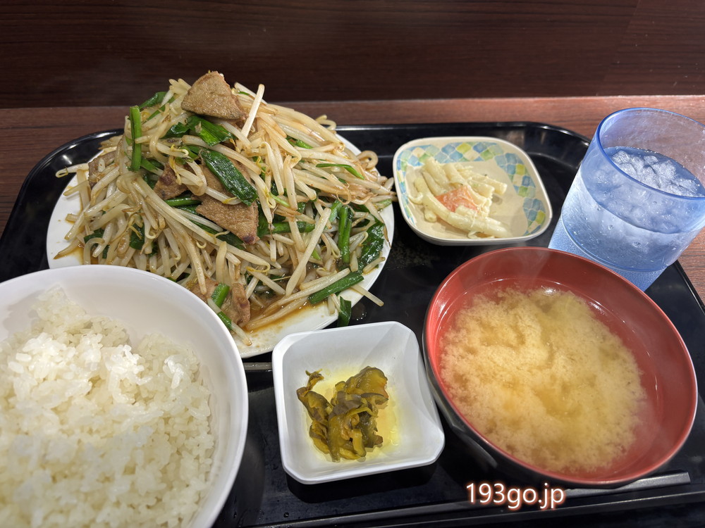 ニラや山盛りもやしのレバニラ炒め。