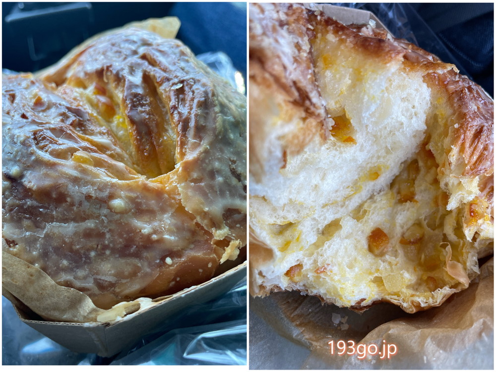 外側はパイっぽくて中はオレンジの果汁感があり、しっとりふわふわ。大きいけど、思わず丸ごと頬張れるおいしさ。