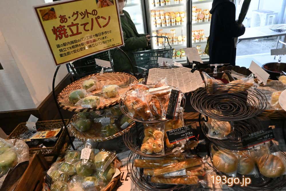 敷地内のパン屋「あ・グット」のパン棚は空だったけど直売所内のパンコーナーに並べられていた。