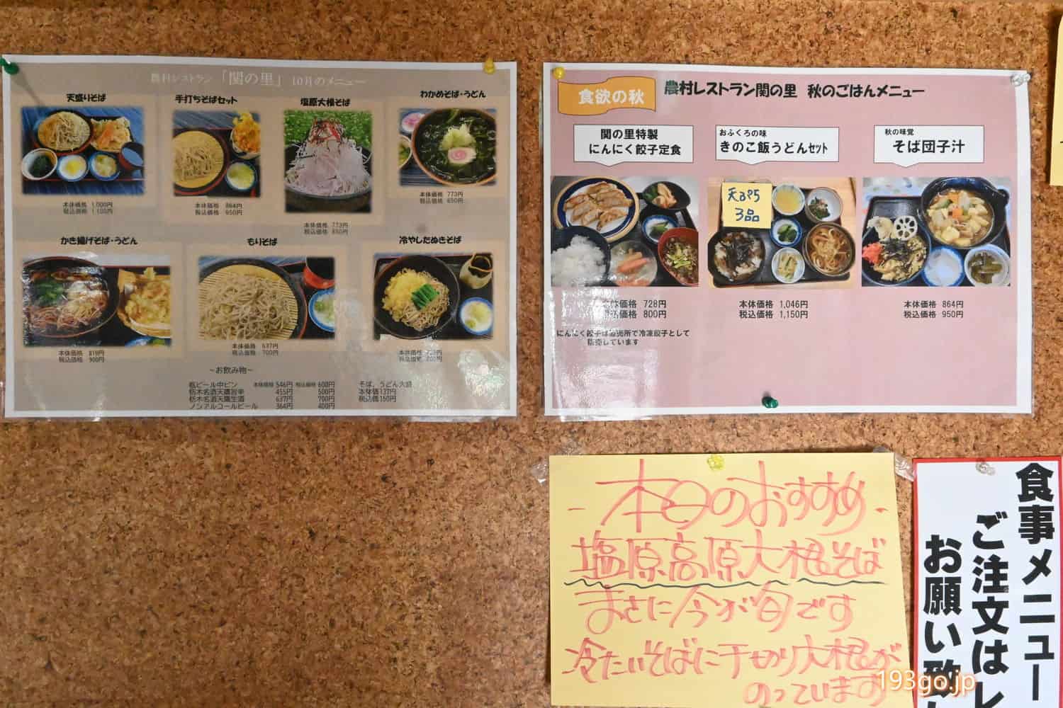 直売所お隣の「農村レストラン 関の里」のメニューが気になり、食べていくことに。
