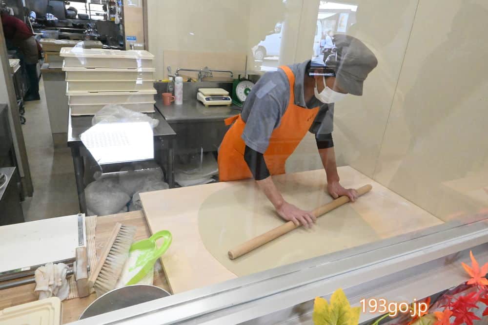 ガラス越しに手打ちそばの様子も。