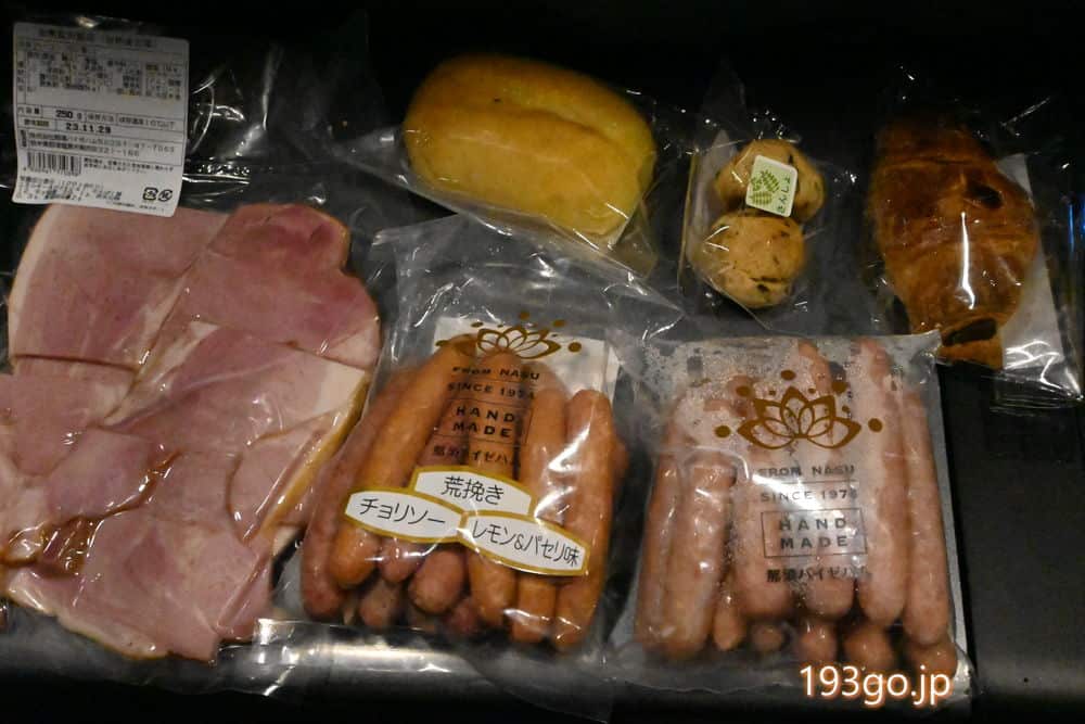 農産物直売所で野菜やウインナー、パンなどを調達。