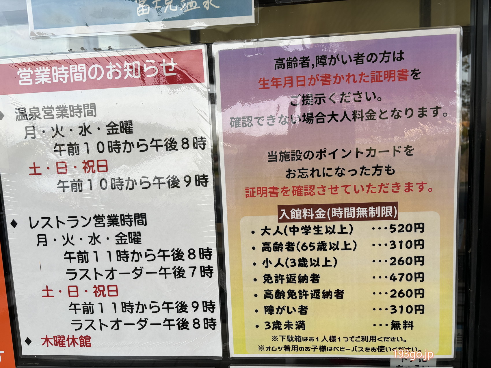入館料 ※小人以外は入湯税50円含む