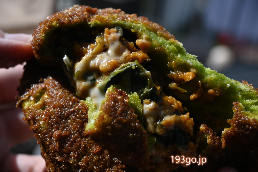 大振りのカレーパンは、深谷ネギが入ったカレーパンと、トロ~リほうれん草とチーズのカレーパン。