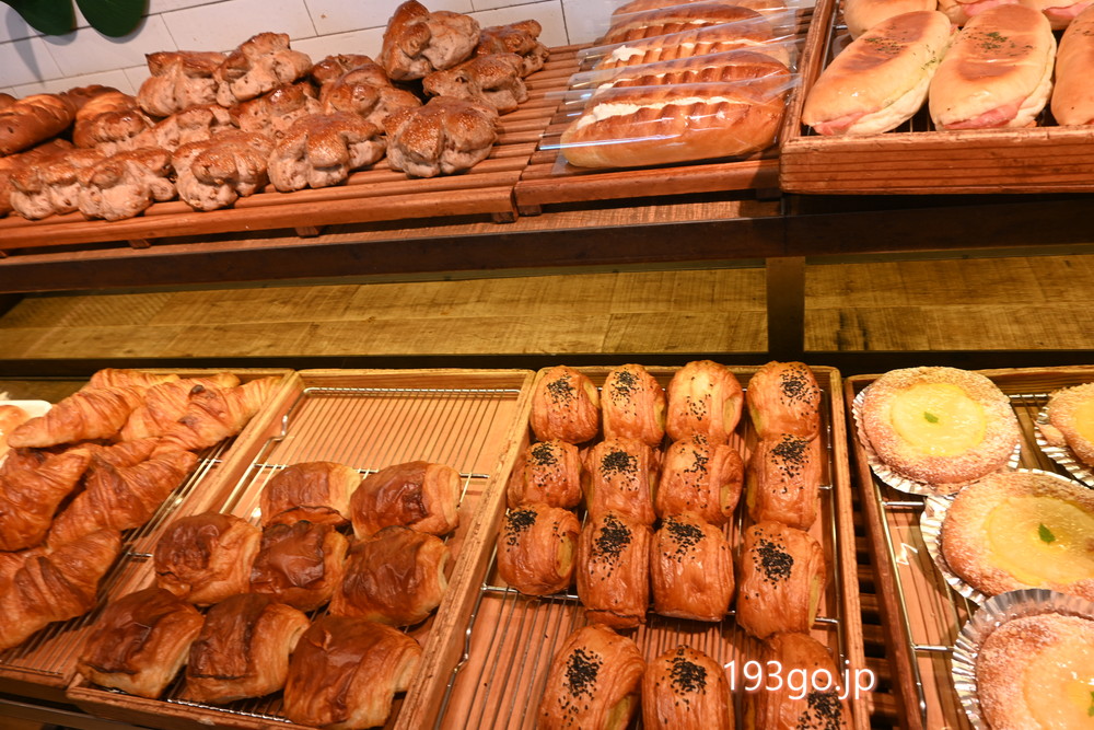 パン棚にぎっしり並ぶ種類豊富の焼きたてパンを見て、これは食べるしか。