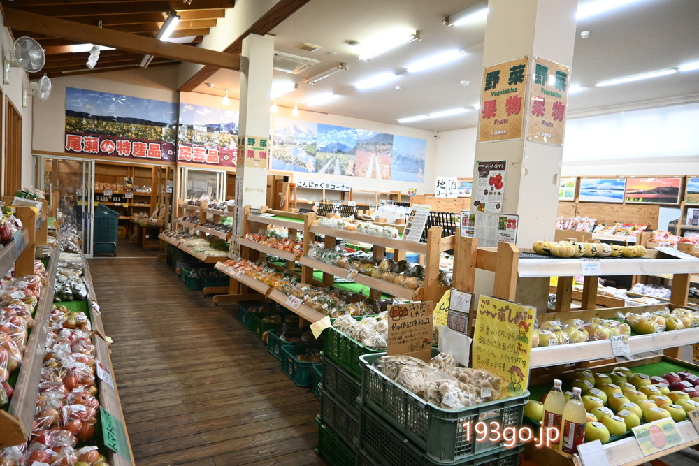 外の売店「スナック ふたば」は9:00~17:00まで営業し、片品産のりんごや花豆、トマトなどを使ったソフトクリームなどが販売。