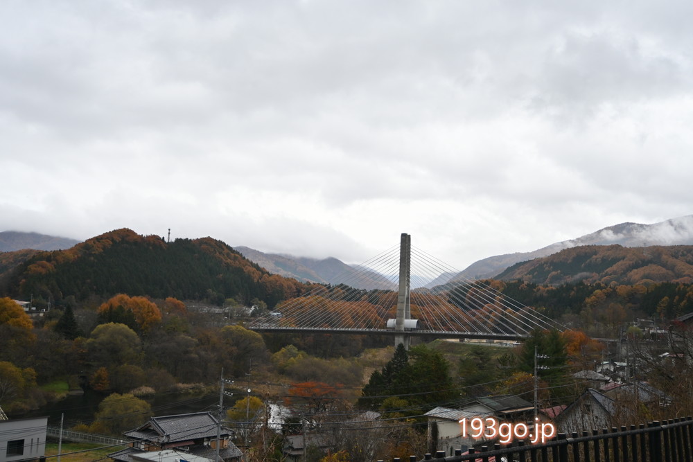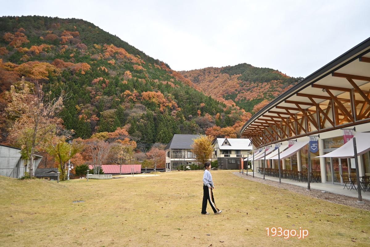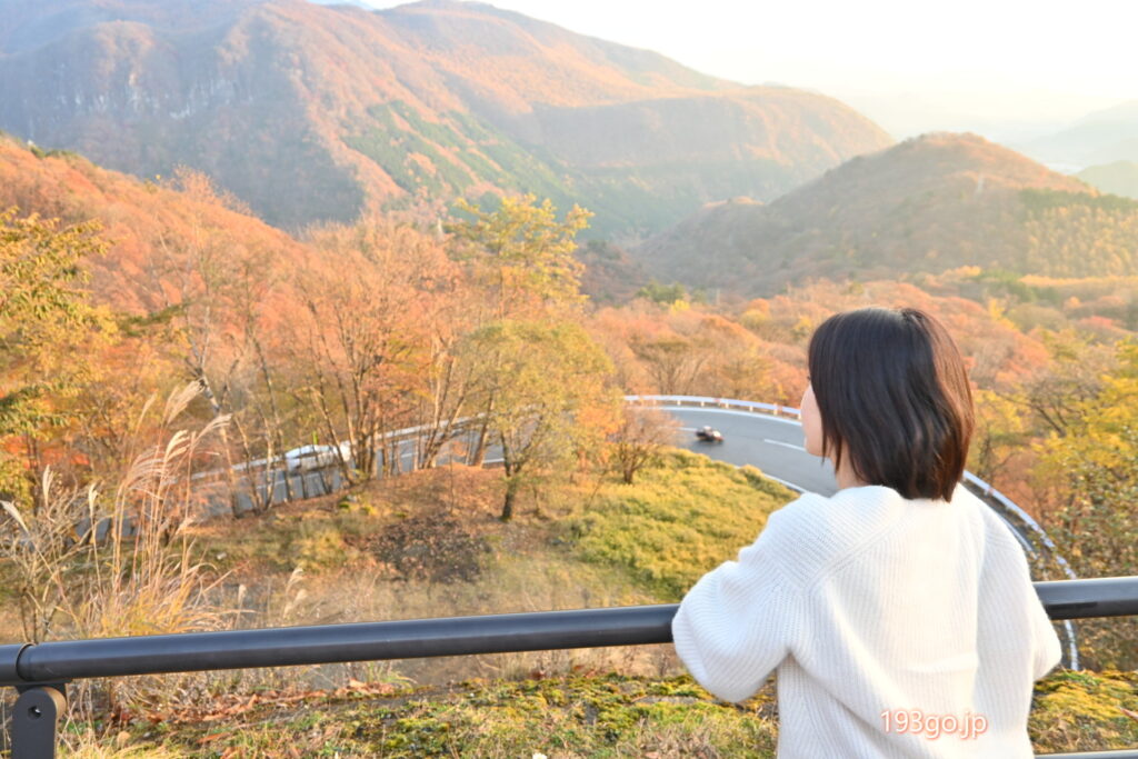 バックに壮大な山々!奥日光では紅葉が終わりほぼ枯れ木だったけど、群馬では鮮やかな景色に出会えた。