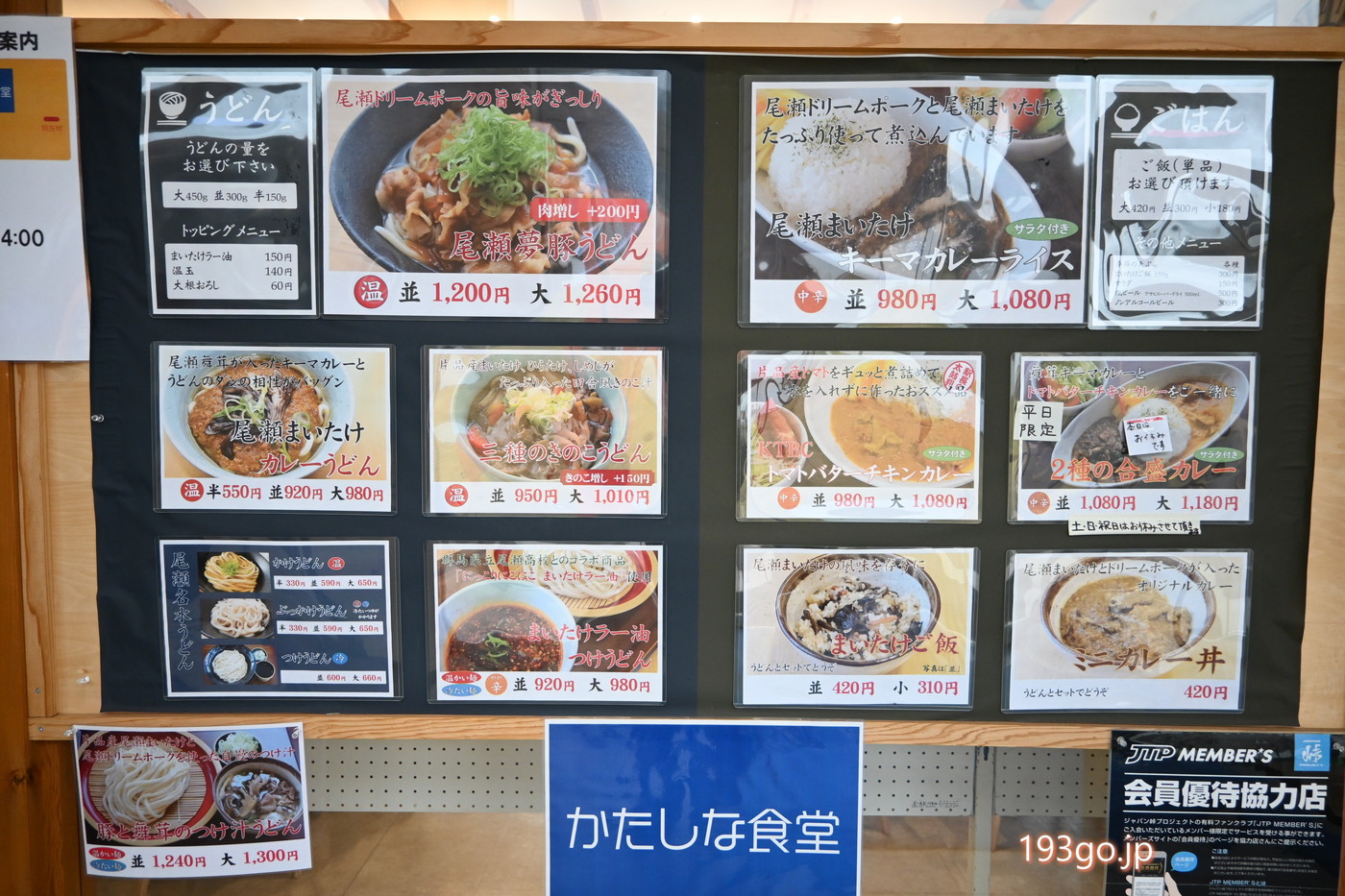 名物の舞茸などのキノコを盛り込んだうどんやカレー等、そそられるメニューが多い。