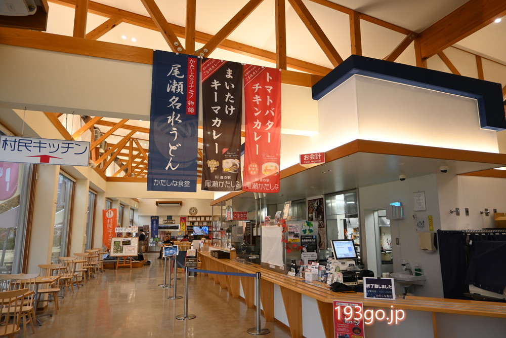 【湯元温泉 板屋】から30分ほど山道を走り、道の駅「尾瀬かたしな」へ。