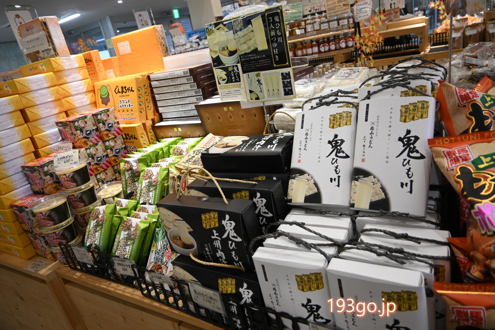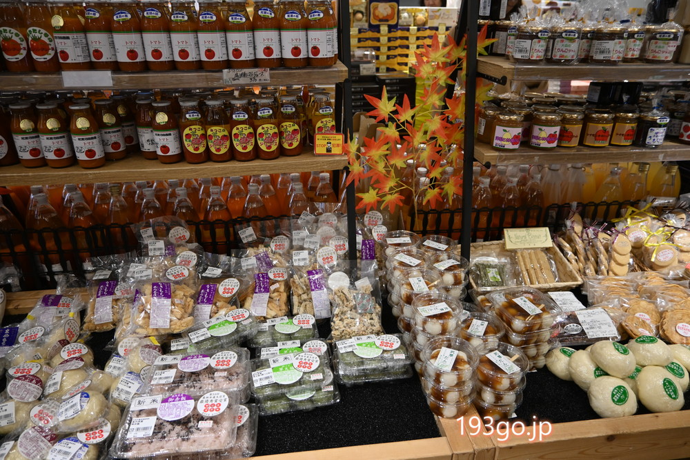 直売所には地産の野菜や果物の他、ひも川うどんやおっきりこみうどん、お餅やおまんじゅうなどの和菓子、お惣菜、冷蔵デザート、群馬土産など品揃え豊か。