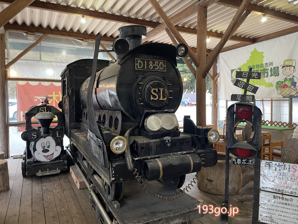敷地内には広い駐車場とRVパーク、直売所も備わる。足湯に入れるテラス席、SL列車も!