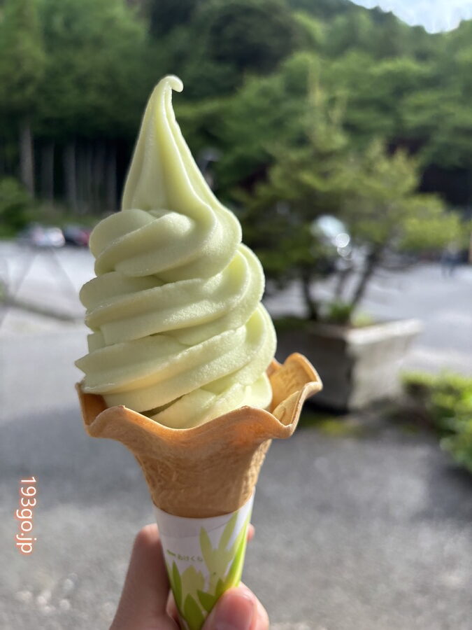 外の売店で、シャインマスカットソフトクリームをテイクアウト:(大)500円