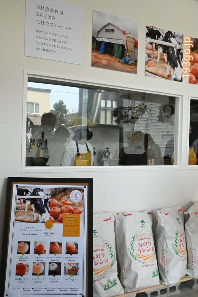 自社牧場の搾りたて牛乳と北海道産小麦粉「みのりブレンド」を使用した、牧場直営の生仕立てドーナツ、とのことで期待大。