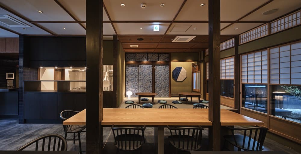 町家棟の1階には宿泊者専用ラウンジ。京町家ならではのデザインで、