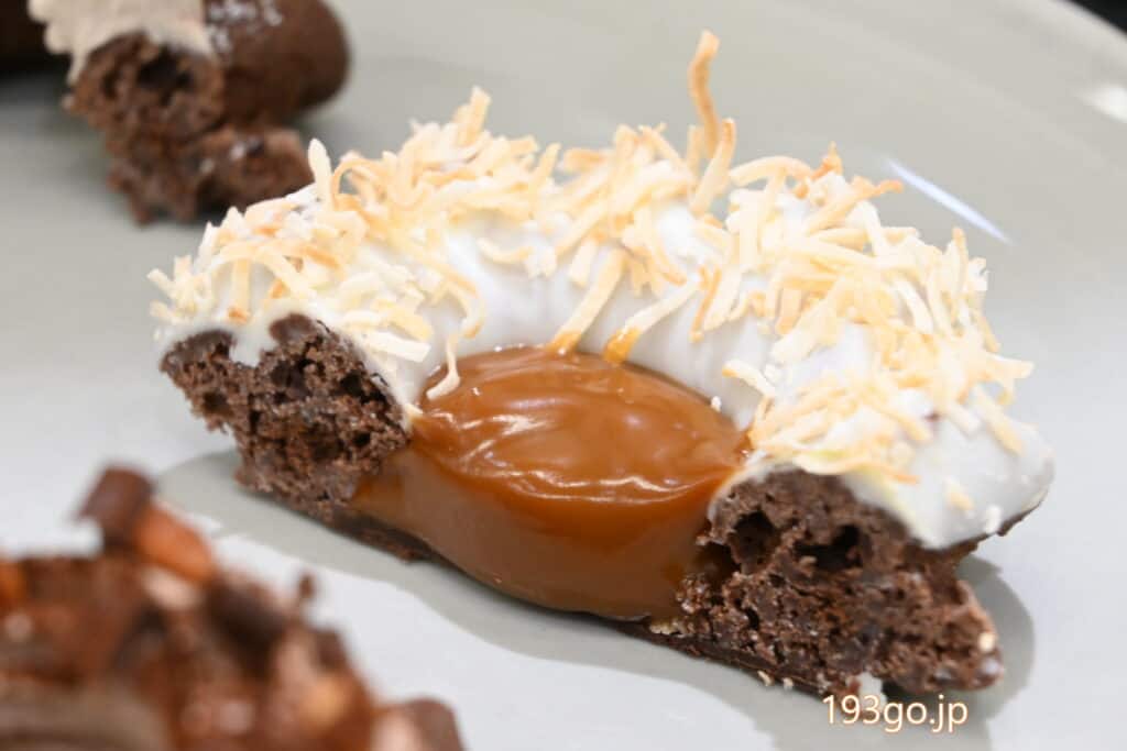更に、カールチョコやアーモンド、ココナッツ、ローストピスタチオなど、それぞれ別のトッピングが施され、食感も重視してスイーツづくりを行う鎧塚シェフならではのスイーツだ。