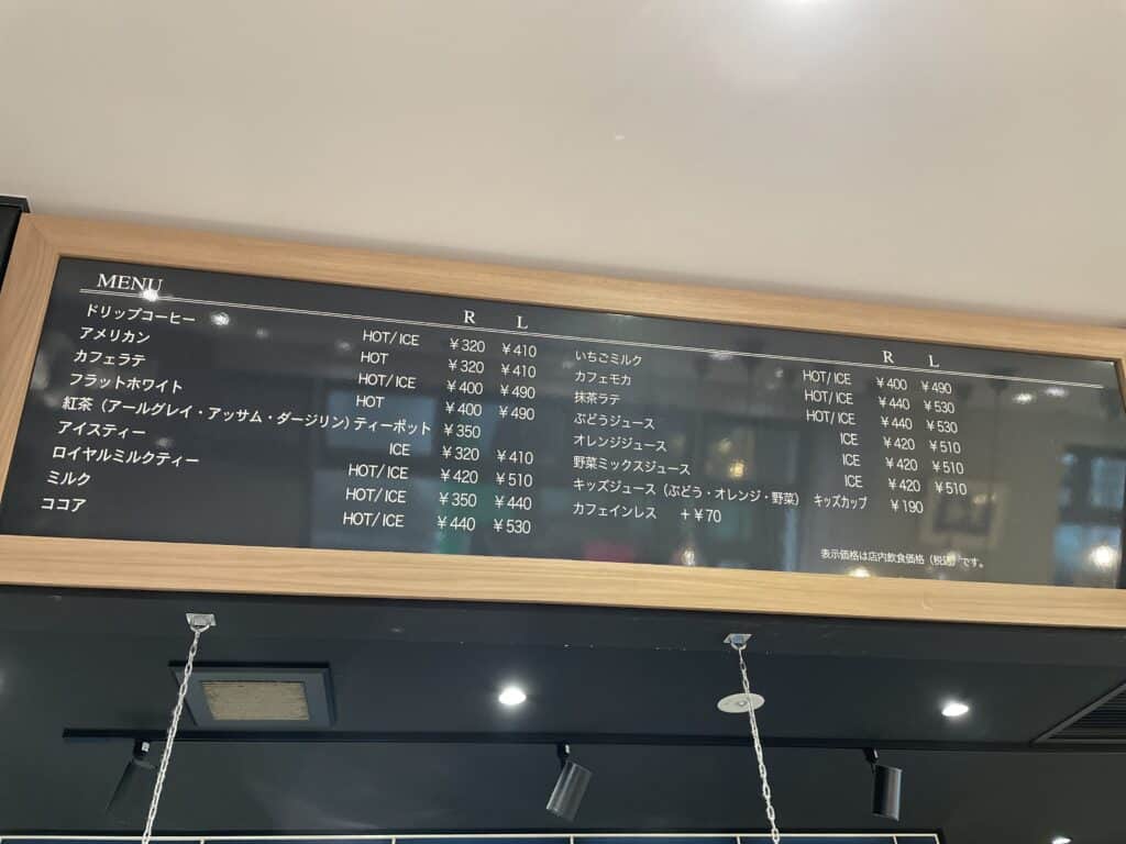 イートインスペースもあり、ドリンクメニューも。